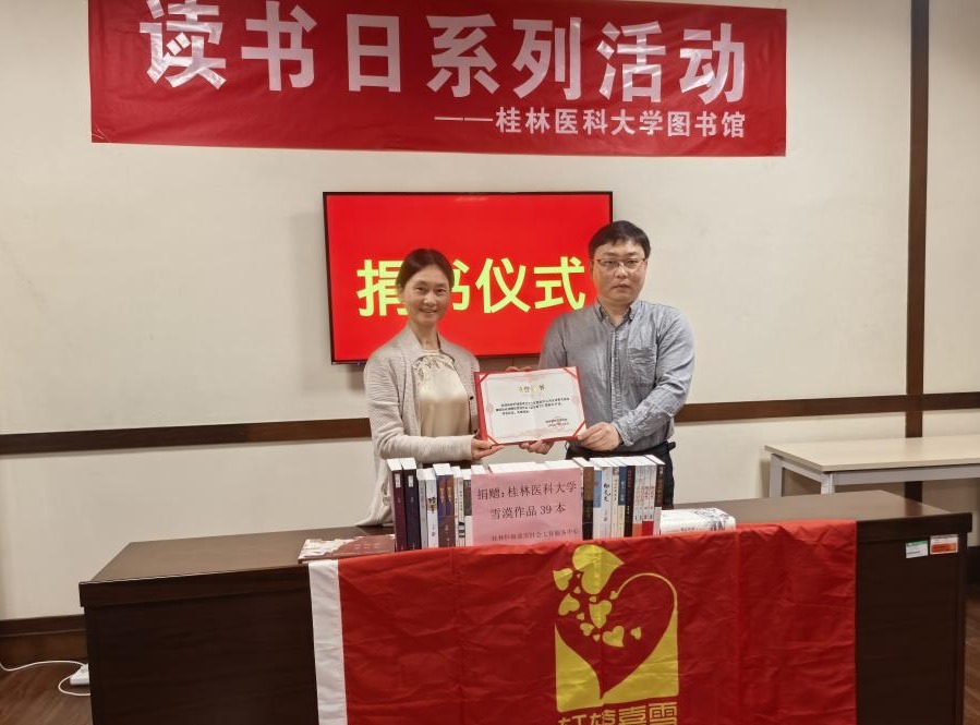 4月16日上午,桂林轩辕嘉雪社会工作服务中心向我校图书馆捐赠《爱不落下》等图书共39册。捐赠仪式在临桂校区图书馆会议室举行。桂林轩辕嘉雪社会工作服务中心顾问黄德萍女士、执行理事唐红莲女士,图书馆教职工、学生代表参加捐赠仪式。