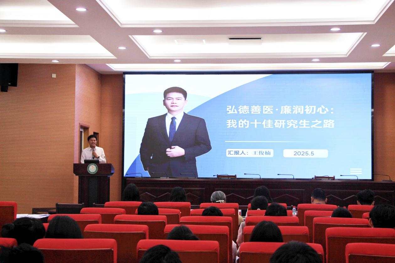 经培养单位推荐,19 名优秀候选人进入现场展评。展评现场气氛热烈,候选人通过现场演讲、视频展示等多元形式,声情并茂地分享自己在学术科研、社会实践、志愿服务等多领域的奋斗历程与感悟,全方位展现我校研究生弘德善医、廉润初心的精神风貌。经评审,拟评选出2025年“十佳研究生”10名及提名奖9名。