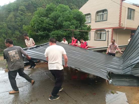 灾情发生时,平熬村前第一书记阳作松带队到村上最高山头白岩组遍访农户回村部,途中冒险经历狂风暴雨,安全抵村部后,秦佑德便接到村副支书秦胜岳的报险电话。他当即带领队员顶风冒雨奔赴现场。只见破碎的瓦片、断裂的梁木等大面积屋顶结构横亘路中,道路完全截断,车辆行人无法通行。风雨丝毫没有减弱的迹象,滞留风险不断加剧。“快!先确保道路畅通!” 秦佑德一声令下,平熬村新老书记、队员田爽及村 “两委” 迅速行动。面对沉重湿透的房梁、锋利瓦片和粘连杂物,清理工作困难重重,他们肩扛手抬,奋力清除障碍物,汗水与雨水交织,只为尽快打通这条关乎村民安全出行的要道。他们的行动感染了热心村民,纷纷主动加入清障队伍。风雨中,干群齐心协力,经过近两小时连续奋战,终于清除大型障碍物,道路恢复通行能力。第一辆滞留车辆安全驶过时,现场响起欣慰欢呼。