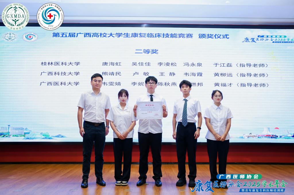 本次竞赛由广西医师协会主办,广西医师协会康复医师分会、广西医科大学第一附属医院承办,全区共51支队伍、180余名学生参赛,10支队伍晋级决赛。竞赛分病例展示、理论知识考核及现场操作演示三个环节,全方位考验选手的操作能力、临床思维、沟通技巧及人文素质。我校康复医学系2支队伍入围决赛,其中唐海虹、吴佳佳、李凌松、冯永泉团队获二等奖,蒋雨欣、周圣富、雷以勒、林锶馨团队获三等奖。