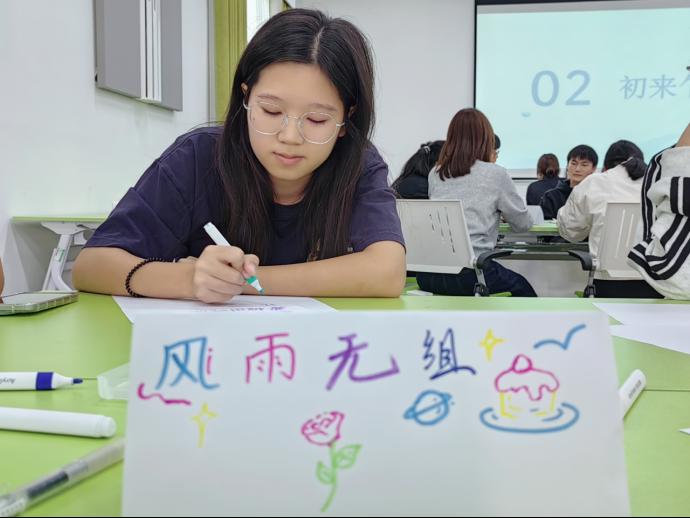 活动在“破冰之旅”中拉开帷幕。同学们通过模拟“小雨”“中雨”等身体动作迅速活跃了现场氛围,有效消融了彼此间的陌生感与拘谨。“初来乍到”环节中,新生们以小组形式展开自我介绍,分享家乡文化与个人兴趣,初步建立起团队信任和协作基础。“人生之书”环节引导同学们回顾过去、审视当下、展望未来。大家认真书写“过去的我”“现在的我”与“将来的我”,在梳理个人成长轨迹的同时,也增强了对自我的认知,提升了生涯规划意识。“烫手山芋”环节聚焦现实挑战,鼓励同学们坦诚交流入学以来在学习方法与人际交往中遇到的困惑。通过小组讨论与朋辈学长的经验分享,大家共同探讨应对策略,有效缓解了独自面对困难的压力。“心灵树洞”与“把爱传递”环节中,新生们将大学愿望贴在许愿树上,并在明信片上写下鼓励话语,随机赠予身边同学,不仅传递了温暖与关怀,也进一步增强了集体凝聚力。