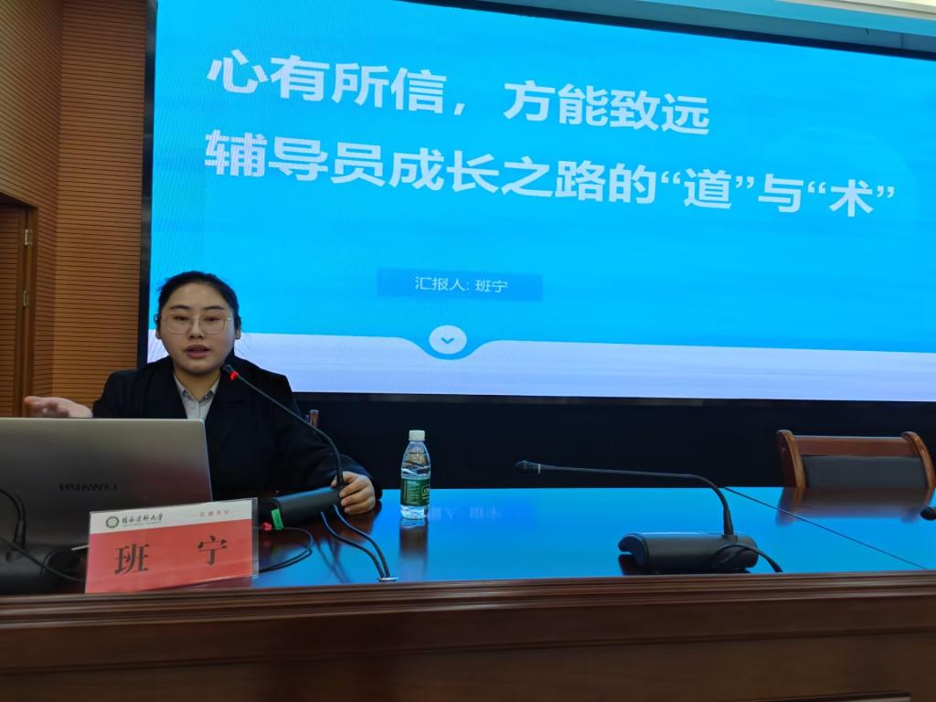 班宁以《心有所信,方能致远——辅导员成长之路的“道”与“术”》为题,结合自身丰富的学生工作经验,分享了职业发展的奋斗历程,同时围绕辅导员工作室建设案例着重探讨“专业+思政”育人路径。她提出,辅导员工作要用好新时代伟大变革成功案例深化育人内涵,要突出网络思想教育分众化精准化引导,要建好文化赋能增效路径以文化人以文育人。