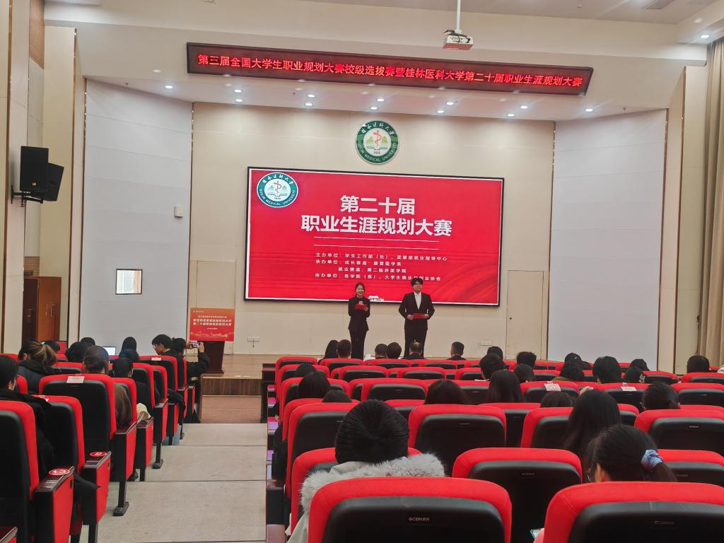 为引导学生树立科学的就业观,提升职业规划能力,12月6日上午,桂林医科大学第二十届职业生涯规划大赛决赛在临桂校区国际教育交流中心多功能报告厅举行。大赛由学生工作部(处)、武装部就业指导中心联合主办,成长赛道由康复医学系、大学生就业与创业协会共同承办。
