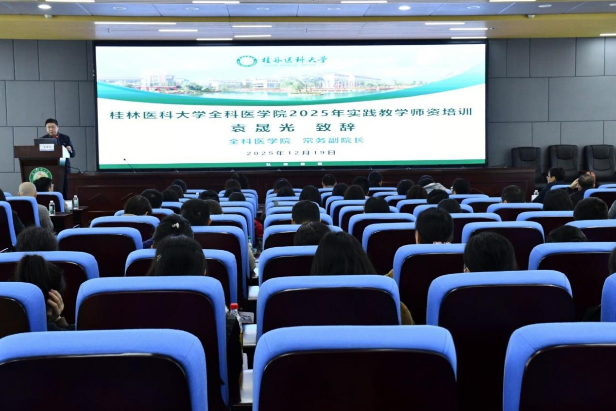 为深入推进全科医学实践教学高质量发展,加强基层卫生人才培养能力建设,12月19日,全科医学院在临桂校区科学实验中心报告厅举办2025年度全科实践教学师资培训。常务副院长袁晟光教授出席开班仪式并致辞,教研科科长唐建红教授主持培训活动,全院老师和来自各二级医院实践教学基地带教老师120余人参加培训。