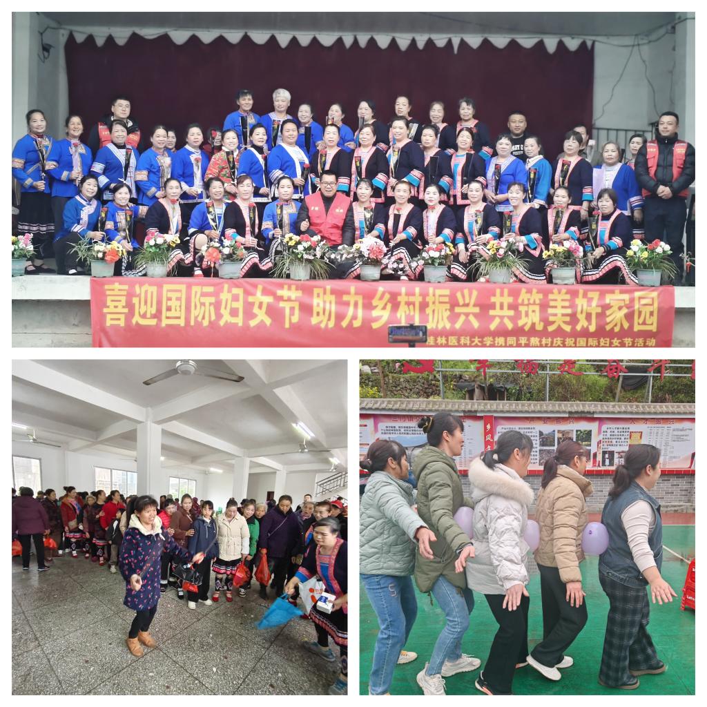 春风和煦,巾帼绽芳。在第116个“三八”国际劳动妇女节来临之际,为丰富乡村妇女文化生活,凝聚巾帼力量助力乡村振兴,桂林医科大学统筹联动龙胜各族自治县平熬村、同乐村、交其村、西腰村、江柳村、城田村等6个帮扶村,开展“医心助振兴,巾帼绽芳华”主题庆祝活动。