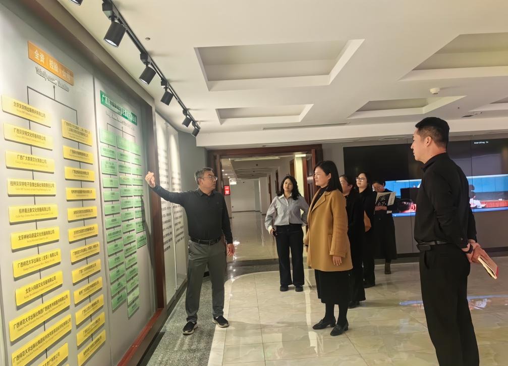 此次调研受到了广西独秀书房图书有限公司相关负责人的热情接待。我校图书馆一行先后参观了广西师范大学出版社社史馆、广西独秀书房阅览空间、文创展示区等功能区域,详细了解广西独秀书房在阅读推广、文化活动策划等方面的丰富实践经验,沉浸式感受“大学人文实验室”的独特魅力。交流座谈会上,双方围绕图书馆服务升级、阅读活动品牌建设等议题展开深入探讨。独秀书房相关负责人分享了多业态融合发展及在文化活动等方面的典型做法。我校图书馆负责人介绍了桂林医科大学图书馆在资源建设、学科服务等方面的工作情况。双方共同探讨了高校文化空间高质量发展的新思路、新路径。