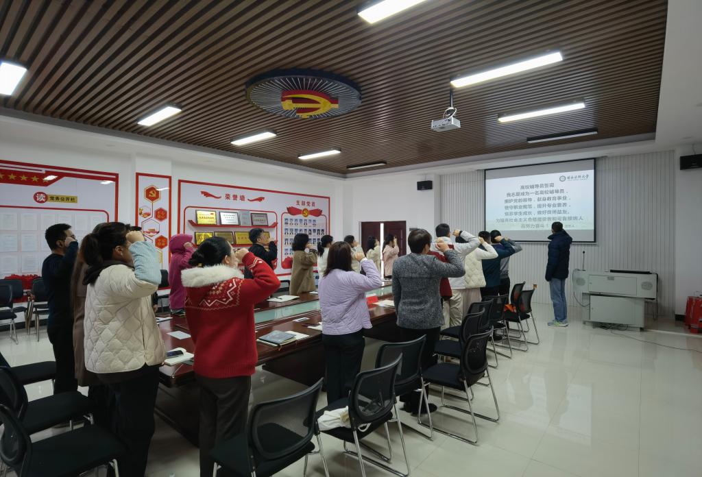 开班仪式上,参会人员庄严宣誓,同时为参与新老辅导员结对帮扶的九位导师颁发了聘书。周小群在仪式上强调,新入职辅导员要深刻认识辅导员岗位的重要意义,明确角色定位,围绕“立德树人”这一根本宗旨,努力成为政治强、业务精、纪律严、作风正的优秀辅导员。