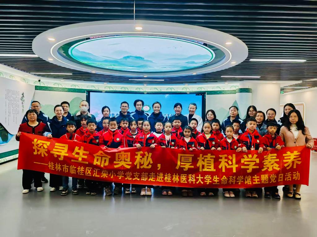 为深入贯彻落实新时代党的建设总要求,创新基层党建工作载体,探索高校与地方党组织优势互补、共同发展的有效路径,近期,我校基础医学院办公室组胚免疫党支部与桂林市临桂区汇荣小学党支部联合开展了以“生命科学启蒙”为主题的首次支部共建活动。此次活动以我校生命科学馆为实践基地,标志着双方以党建为桥梁的合作正式启航。