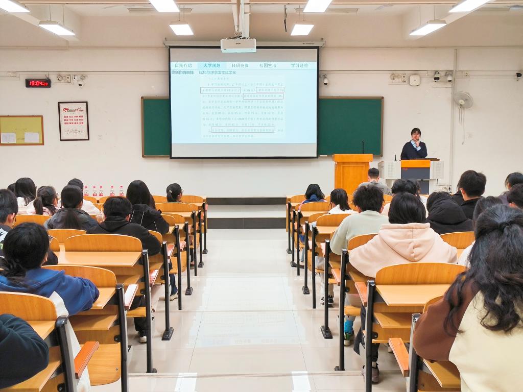 活动伊始,2024年度国家奖学金、桂医优秀学子获得者姚雅馨详细介绍了国家奖学金的资助政策,并从大学规划、科研竞赛、校园生活、学习经验四个方面帮助同学们更好地完善大学学习规划,并对重点课程的学习技巧与方法进行了分享。郑悦则从学院资助宣传大使的身份出发,从立学、立身、立行三个方面,介绍了国家励志奖学金及资助政策,并分享了自己从受助者到助人者的转变经历。李虹毅则从四六级考试经验分享出发,向同学们介绍了四六级考试的注意事项、备考方法、备考时间的有效安排以及各类题型的详细解题方法及技巧。最后,陆俊荣强调,同学们应当积极利用学校资源平台,尽早建立大学规划,主动学习,积极投身学院优良学风建设,度过一个理想的大学生活。