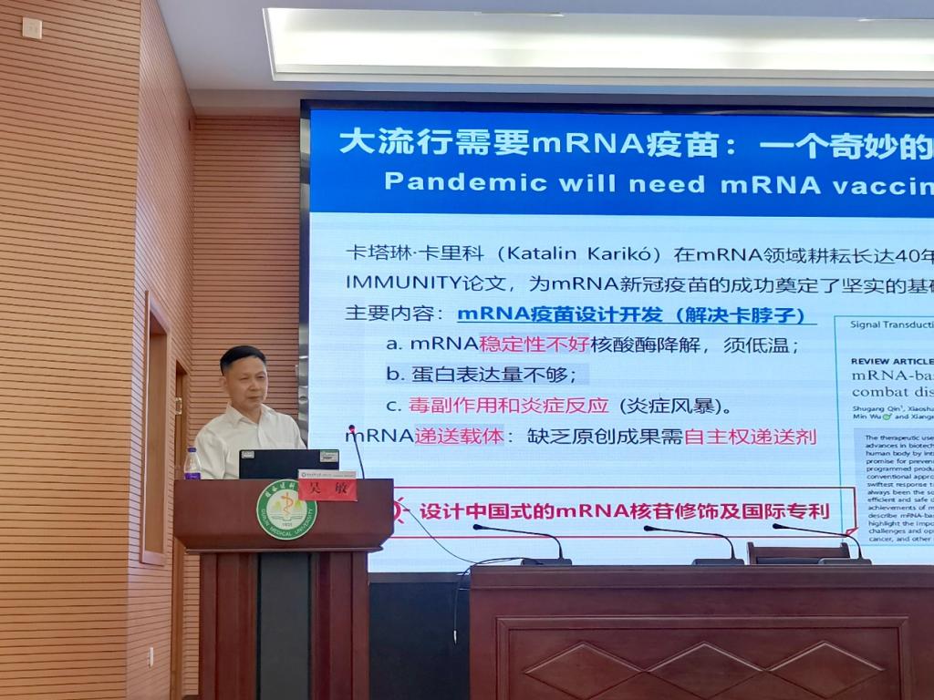 讲座中,吴敏教授介绍了基因编辑、mRNA疫苗在大流行疾病中的作用,重点介绍了Ⅲ型CRISPR基因编辑方法对冠状病毒的杀伤作用。还分享了其课题组在lncRNA和miRNA互作机制、基因编辑精准调控、以及Anti-CRIPSR、细菌免疫系统等方面取得的研究进展。吴敏教授的讲座以详实的数据、生动的讲解,深入浅出地向参会师生分享了其课题组取得的多项原创性研究成果。