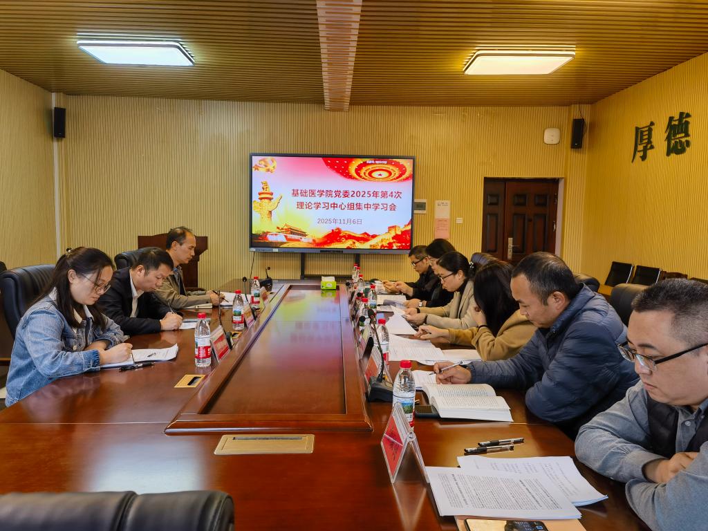 11月6日,基础医学院党委在基础楼1501会议室召开党委理论学习中心组2025年第4次集中学习会。学校党委常委、副校长陈健及相关工作人员到会巡听旁听指导。会议由学校党委常委、党委宣传部部长、基础医学院党委书记麦婕主持。基础医学院党政领导、党委委员、组织员参加会议。