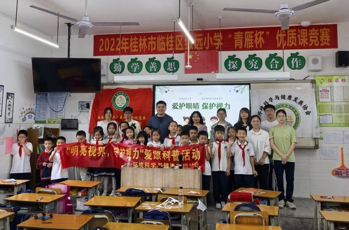 为践行健康中国战略,发挥基层党组织服务社会的作用,2025年5月27日,桂林医科大学基础医学院重点实验室党支部联合环境科学与健康发展协会,组织“爱眼小队”走进致远小学,开展“明亮视界,守护视力”爱眼科普活动。