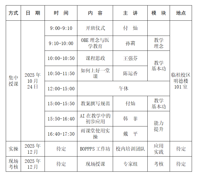 附件2 桂林医科大学2025年教师岗前教学培训计划表