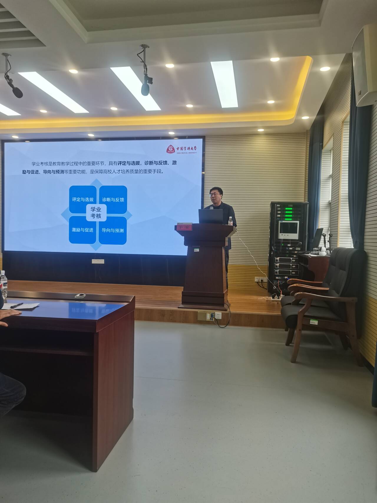 4月25日上午,中国医科大学教务处副处长于宏教授在公共卫生学院行政楼217会议室举办了题为《学业考核评价与教育测量学》的学术讲座,教务处、教育评价与教师教学发展中心、各学院(系、部)教学管理人员和学校骨干教师代表聆听了本次讲座。讲座由桂林医科大学教务处副处长莫中成主持。
