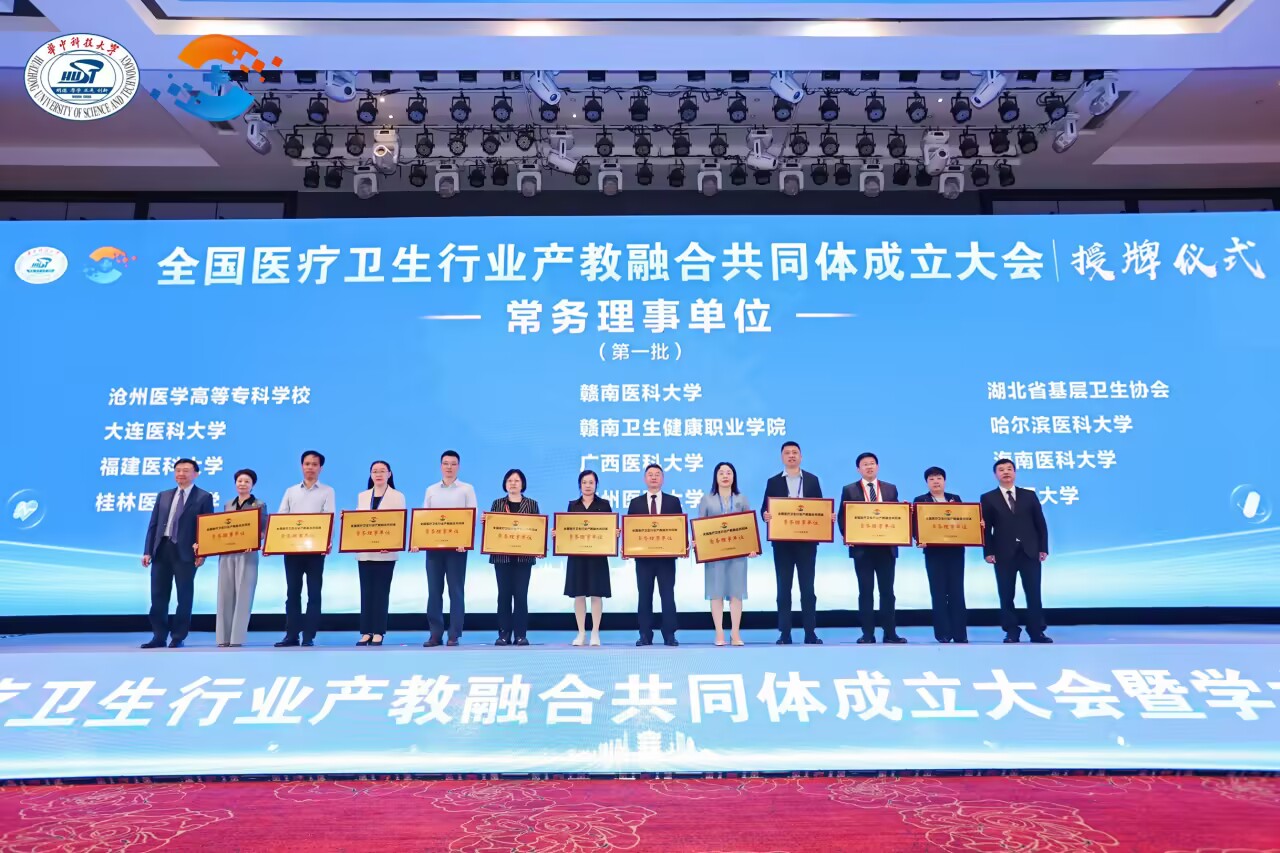 5月7日至9日,由华中科技大学主办,华中科技大学同济医学院等单位承办的全国医疗卫生行业产教融合共同体成立大会暨学术研讨会在武汉举行。教务处处长魏兵代表我校受邀参会,会上我校被遴选为常务理事单位。