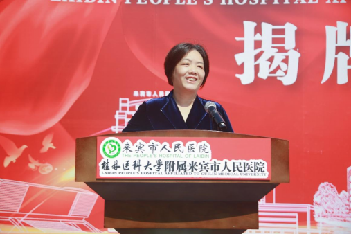 杨远艳在致辞中强调,“桂林医科大学附属来宾市人民医院”的揭牌,是深化医教协同、推动优质医疗资源提质增效的重要举措。她表示,依托桂林医科大学的教学、科研及人才优势,将为来宾市人民医院发展注入新动能,进一步优化区域医疗服务能力。