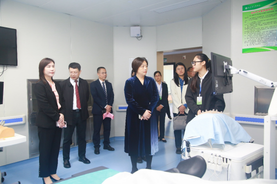 仪式开始前,曾小云一行实地走访了临床能力模拟培训中心、学生宿舍、党建文化长廊、信息管理中心及门诊部,详细了解医院在医疗业务、学科建设、科研教学及学生管理等方面的情况,并对医院已取得的成绩表示肯定。