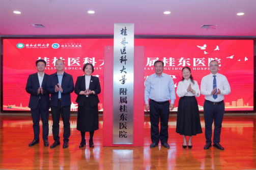 10月31日下午,桂林医科大学附属桂东医院揭牌仪式顺利举行。桂林医科大学校长曾小云、贺州市卫生健康委党组书记、主任覃恩先,以及学校相关部门负责人、附属桂东医院党政班子成员、中层干部、校友代表和实习生代表共同出席仪式。
