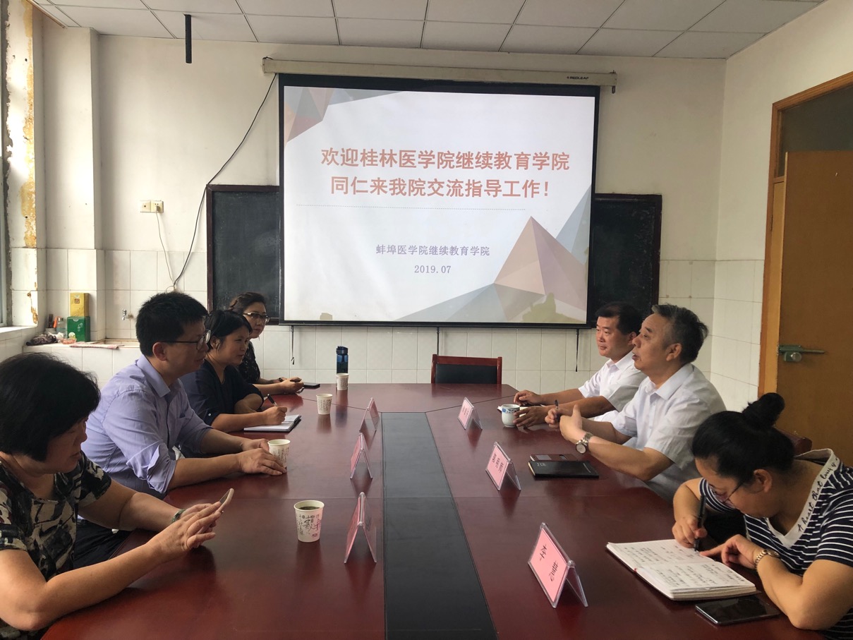 7月10日上午,高东院长一行4人至蚌埠医学院继续教育学院进行交流学习,蚌埠医学院继续教育学院郭明师书记、储德开副院长进行了接待。交流会上,郭明师书记简要介绍了蚌埠医学院继续教育学院的发展概况和非学历开展情况,储德开副院长对学院的办学规模、办学思路、办学经验进行了详细介绍。双方就非学历教育开展经验;校外教学点的管理;人员考核激励机制;远程教育等方面进行了广泛交流,就成人教育在转型中存在的困难和问题进行了深入探讨。