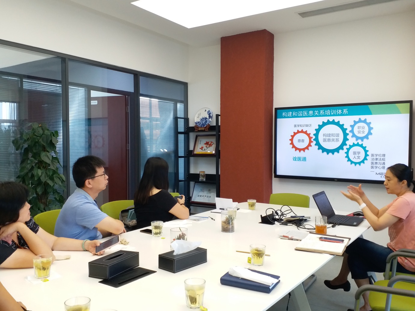 7月12日下午,高院长一行至北京大学医大时代教育进行参观交流座谈。医大时代教育是由北大医学部管理的校属旗舰教育产业,在公司总经理堵文静的陪同下,考察了公司人文环境与设备设施,体验了医大时代教育的高水平远程课件技术制作系统。随后双方在座谈会上进行了深度交流与探讨,医大时代教育董事长高澍苹、堵文静总经理、王丽副总经理参加了座谈交流。医大时代夏素华介绍了医大时代的历史发展、经营理念和医学在线教育产品。会上,双方就未来在资源共享、信息技术应用、搭建合作平台等业务方向探讨与医大时代教育建立更高级战略合作的可能性,双方对未来多维度地深层次合作均充满期待。