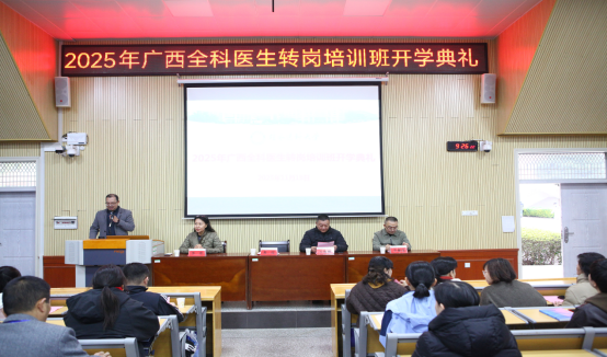 为强化全科医生队伍建设、提升基层医疗卫生服务质效,切实落实自治区卫生健康委相关工作部署。11月18日上午,桂林医科大学继续教育学院举行2025年广西全科医生转岗培训班开学典礼。桂林医科大学第一附属医院代表与来自桂林、玉林等地医疗机构的50名医师齐聚一堂,共同参与此次开班仪式。开学典礼由继续教育学院院长龙亮主持。