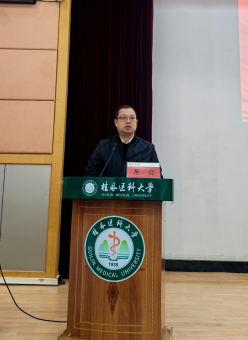 典礼上,继续教育学院负责人龙亮,向全体2026级高等学历继续教育新生致以最热烈的欢迎和最诚挚的祝贺。寄语新生,赓续医者使命,讲话中着重强调,高等学历继续教育是学校人才培养体系的重要组成部分,是广大在职医学工作者提升学历、精进技能、实现职业进阶的核心平台,希望全体新生珍惜宝贵的学习机会,铭记桂医精神,把求学初心转化为奋进动力,在医学深造之路上稳步前行。