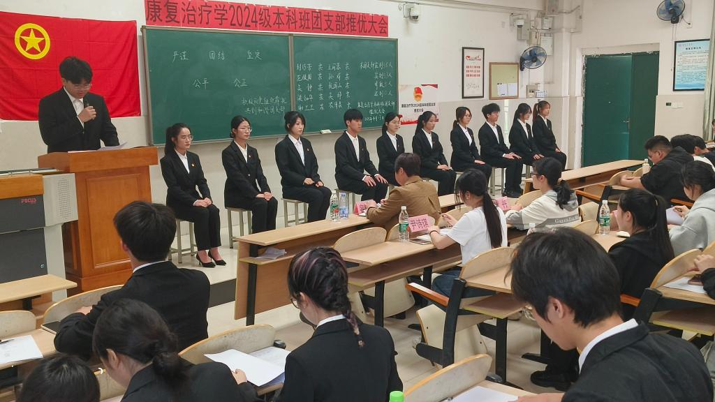 为深入贯彻党的青年教育方针,为党组织注入新鲜活力,培养优秀青年成为入党积极分子及党的发展对象。近期,康复医学系分别在东城、临桂校区召开2025年“推优育苗”“推优入党”“双推优”大会。康复医学系学生第一党支部书记容桂荣,学生第二党支部书记叶化、组织委员海华,第一临床医学院团委组织部干事,康复治疗学2022、2023、2024级本科班团支部全体团员参会。