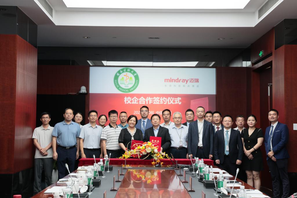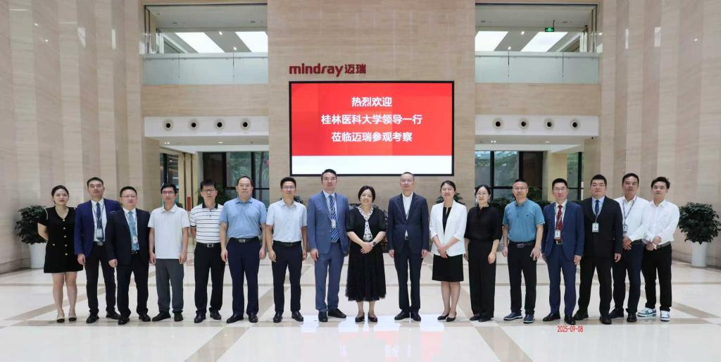 9月8日上午首站抵达深圳迈瑞总部,实地参观了解企业最新研发动态及产业布局。座谈会上,迈瑞集团党委书记林斗明对曾小云一行的到来表示热烈欢迎,详细介绍了迈瑞集团从本土企业向全球医疗器械头部企业迈进的发展历程。会上曾小云明确此次走访的核心目的,对迈瑞在“人工智能+医疗器械”领域的融合实践及取得的世界一流产品成果给予高度赞扬,并指出桂林医科大学在新医科融合建设上与迈瑞集团具有广阔合作空间。随后,双方签署了校企合作协议,明确将在人才联合培养、科技协同创新、附属医院高质量发展、国际资源联动等领域开展深度合作,实现资源互通、优势互补,助推科教融汇、产教融合发展。