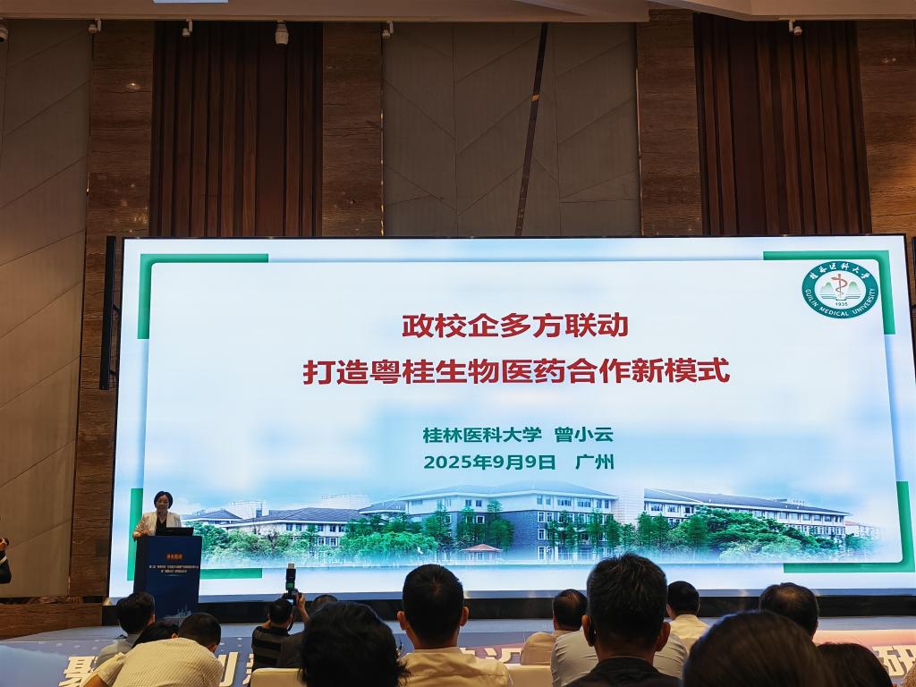 9 月 9 日上午,曾小云校长受广州市南山自然科学学术交流基金会邀请,参加了第二届“粤秀药洲”生物医药与健康产业高质量发展大会,并作《政校企多方联动打造粤桂生物医药合作新模式》的主题报告,向与会嘉宾系统介绍了我校充分依托粤桂区域优势资源,践行“企业出题-高校答题-政府支撑”的工作思路,开展政校合作、校企合作、校院合作、校校合作的相关工作情况。她表示,希望以此次大会为纽带,进一步加强与大湾区生物医药领域企事业单位的交流合作,共同探索跨区域产业协同发展新路径。