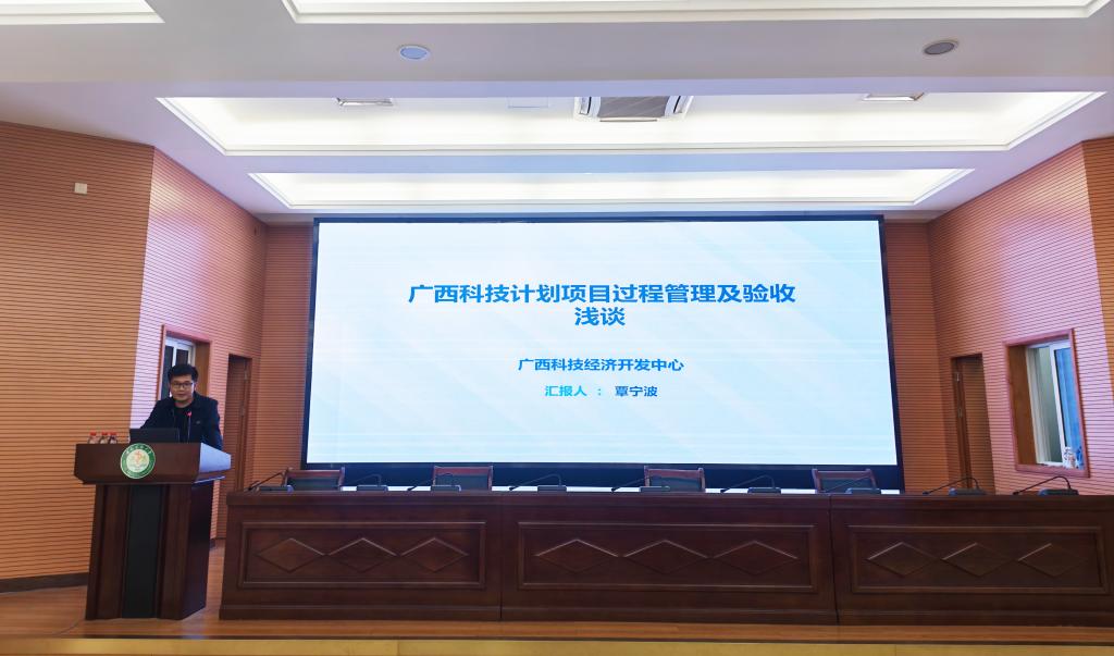 覃宁波高级工程师以《广西科技计划项目过程管理及验收浅谈》为题,结合多年科技管理实践经验,系统解读了广西科技厅核心职能与业务部门架构,清晰梳理了广西科技计划体系的组成类别与申报逻辑。他聚焦项目过程管理、结题验收至结题后管理的流程进行了细致讲解,并针对项目管理中常见的难点问题分享了实用应对策略,为我校科研人员规范开展项目管理、高效完成验收工作提供了清晰指引与实战参考。
