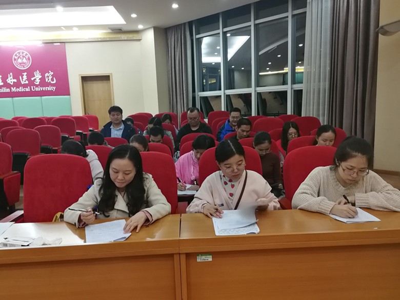 10月17日晚上7点30分在弘德楼一楼会议室,在李媛副书记领导下组织党员干部参加了桂林医学院“不忘初心、牢记使命”为主题的知识竞赛活动考试,附属口腔医院(口腔医学院)党总支共30名党员干部,除了6名因出差、值班外,24名参加考试,考试采用闭卷考,经过一个小时考试后由支委委员改卷,核分,大家都取得了优秀的成绩。刘基沐、吴周玲、谢桂芳、尹小萍、黄超获得前五名。