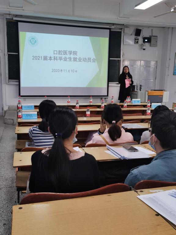 2020年11月10日下午,口腔医学院召开2021届本科毕业生就业动员会。学院党总支副书记李媛、毕业班辅导员和全体毕业生参加了本次会议。