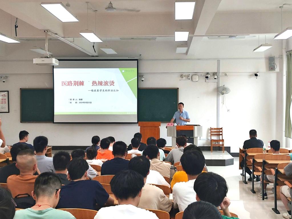 为认真落实校领导深入基层联系学生工作有关要求,切实加强对青年大学生的思想政治引领,9月25日下午,学校党委常委、副院长陈健深入临桂临床医学院2023级临桂临床医学本科一班参加“医路荆棘,热辣滚烫”主题班会。桂林医学院第二附属医院(临桂临床医学院)党委副书记黄宇平及辅导员代表参加此次活动。