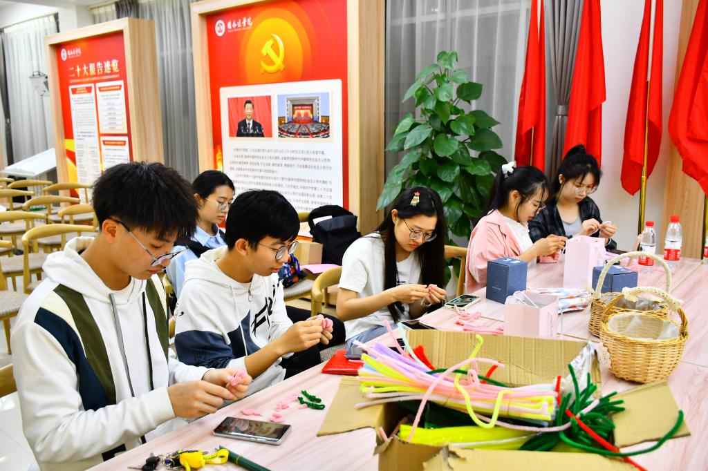 结业典礼上,与会成员通过观看视频,共同回顾过去一年多来的学习和收获。然后,优秀学员代表虞幼慧做工作汇报,提出:“我们要充分利用学院提供的学习机会,提高应急救护能力,充分发挥专业优势,传播急救知识,为‘健康中国’建设贡献自己的一份力量。”随后,班主任敬晓娟宣读优秀学员、合格学员名单,与会嘉宾为学员颁发荣誉证书、合格证书并赠送纪念品。最后,师生共同制作手工花,分享精心定制的结业蛋糕,活动现场洋溢着欢乐喜庆的氛围。