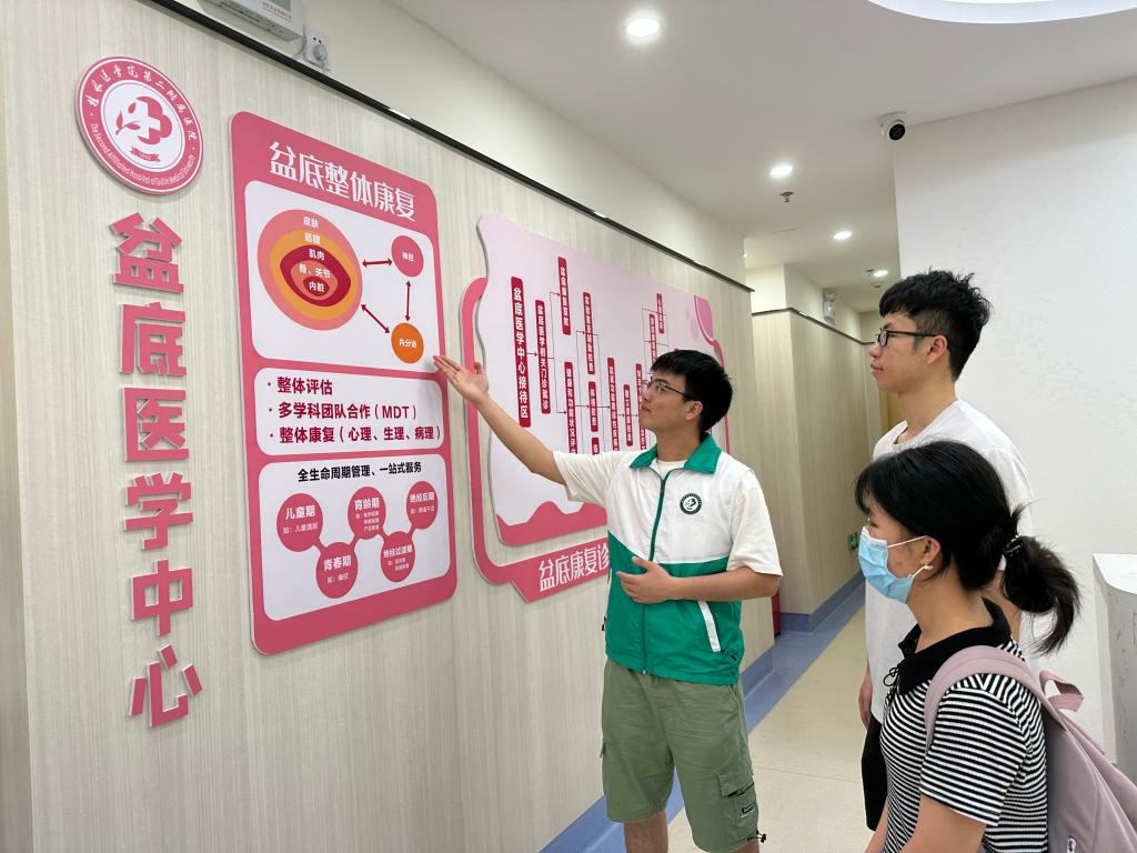 5月1日上午,临桂临床医学院团委组织30余名学生到第二附属医院盆底医学中心参观学习,了解超脉冲二氧化碳激光治疗仪、磁刺激治疗机、生殖循环治疗仪、全自动中药熏蒸治疗舱、多功能电动治疗床、全自动头部中药熏洗治疗舱等国内外先进的仪器设备,以及声、光、电、磁、热等多种物理及康复手法。同时,学院团委组织学生在“五一”假期开展为期5天的“就业体验”。经过带教医生规范的岗前培训后,同学们积极参与盆底医学中心各项服务工作,包括就诊引导、维持就医秩序,陪诊服务,就诊服务环境改善以及做好疫情防控工作等,充分体验医院的职业就业,为患者提供了温馨、舒适的就医服务和环境。
