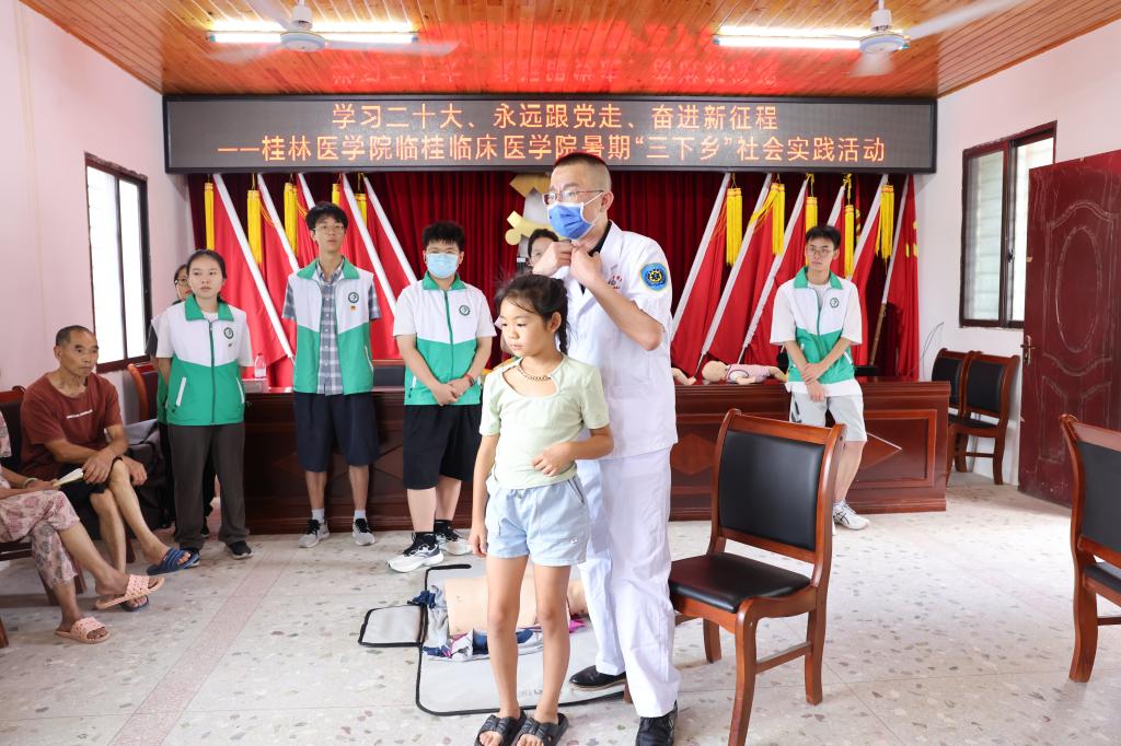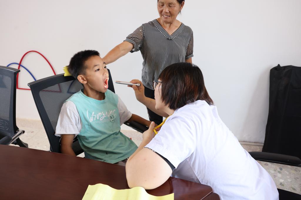 义诊服务,呵护健康。在三合村,团队成员协助桂林医学院第二附属医院的医护人员给村民开展基础生命支持培训,培训内容包括成人、儿童及婴儿的心肺复苏和窒息解除等。此外,团队成员协助儿科、骨科、消化内科等多个科室的医护人员给孩子们进行视力检测、口腔检查、疾病咨询等。