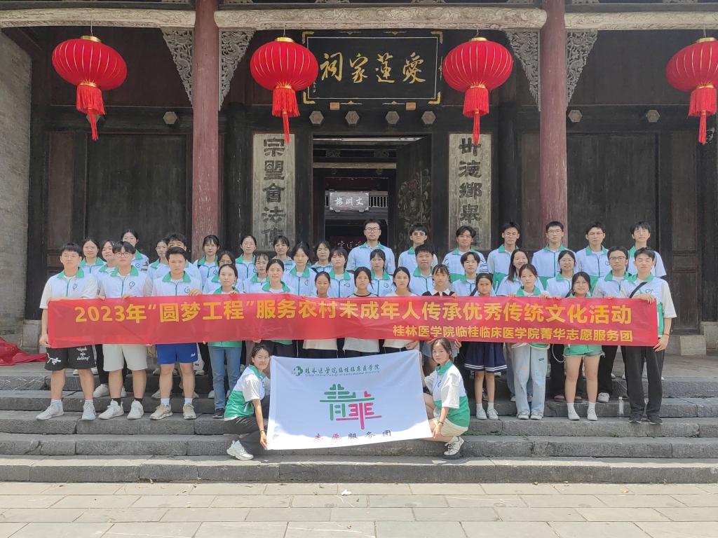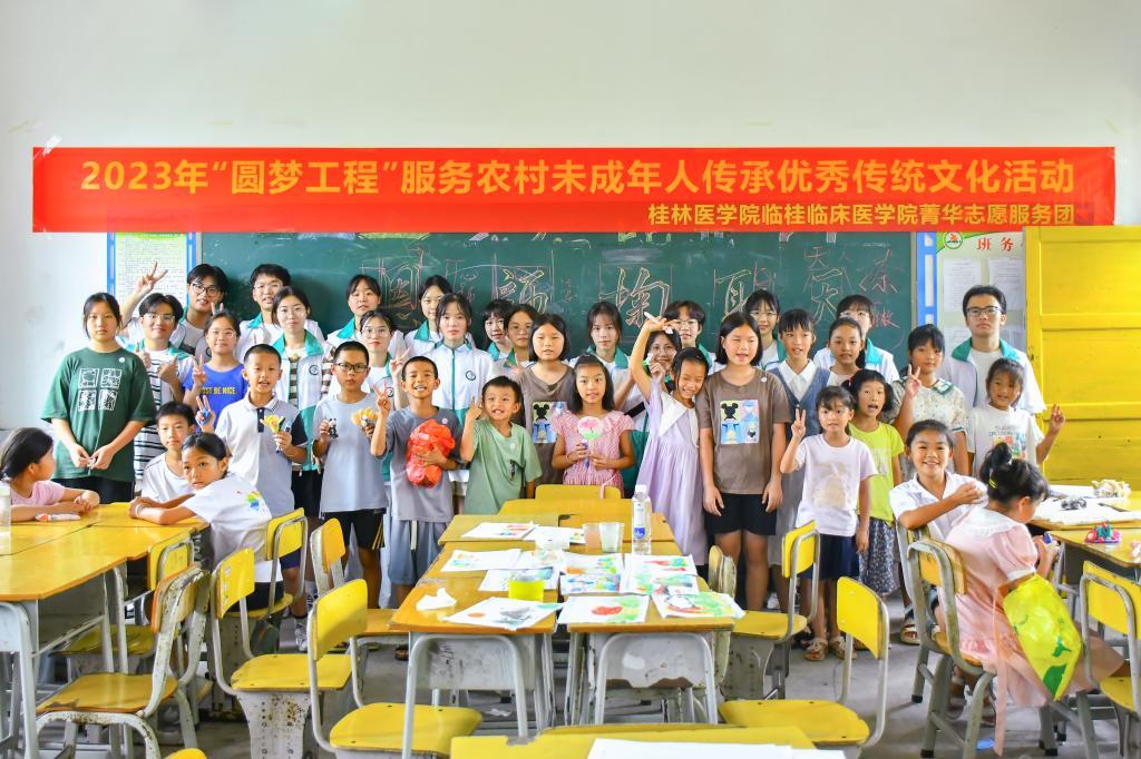 为进一步加强农村未成年人思想引领,大力弘扬中华优秀传统文化,铸牢中华民族共同体意识,2023年7月10日—20日,临桂临床医学院菁华志愿服务团赴桂林市灵川县九屋镇开展“圆梦工程”活动。