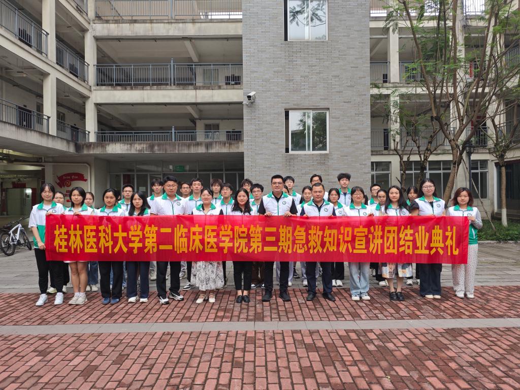 为深入贯彻习近平总书记关于健康中国建设的重要论述精神,全面贯彻党的二十大和二十届二中、三中全会精神,弘扬“奉献、友爱、互助、进步”的志愿服务精神,2025年5月8日,第二临床医学院在临桂校区新时代大学生党建文化中心举行第三期菁华急救知识宣讲团结业典礼。桂林医科大学第二附属医院(第二临床医学院)党委副书记黄宇平,医联体、医共体主任兼感染管理科科长黄剑伟,学工办全体老师出席本次活动,第三期菁华急救知识宣讲团学员参与本次活动。