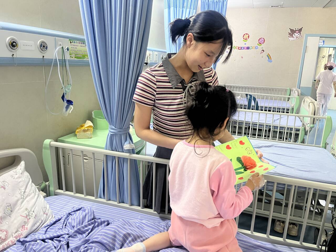 为深入贯彻落实《中共中央、国务院关于全面加强新时代大中小学劳动教育的意见》精神,引导学生牢固树立劳动最光荣、劳动最崇高、劳动最伟大、劳动最美丽的价值观念,为住院儿童送上祝福,5月23日下午,第二临床医学院在广西壮族自治区南溪山医院开展以“贺卡传情,呵护童心”为主题的劳动实践活动。