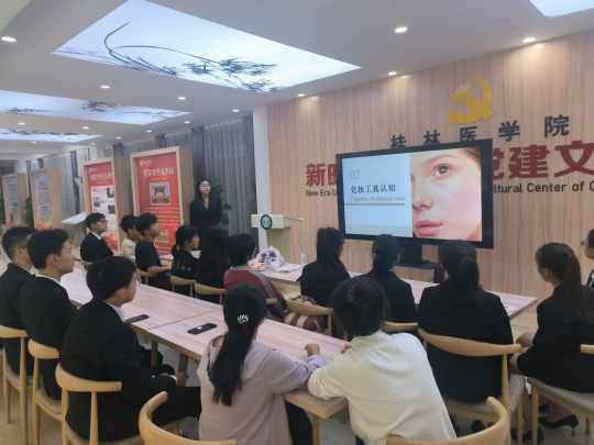 为贯彻学习党的二十大精神,进一步提升学生干部的精神面貌,2023年10月28日,桂林医学院临桂临床医学院菁华艺术团礼仪队在临桂校区党建中心开展以“洋溢青春,精彩无限”为主题礼仪化妆培训。学院菁华艺术团指导老师邓琳玥担任主讲嘉宾,学院菁华艺术团礼仪队成员和学生干部代表参加此次培训。