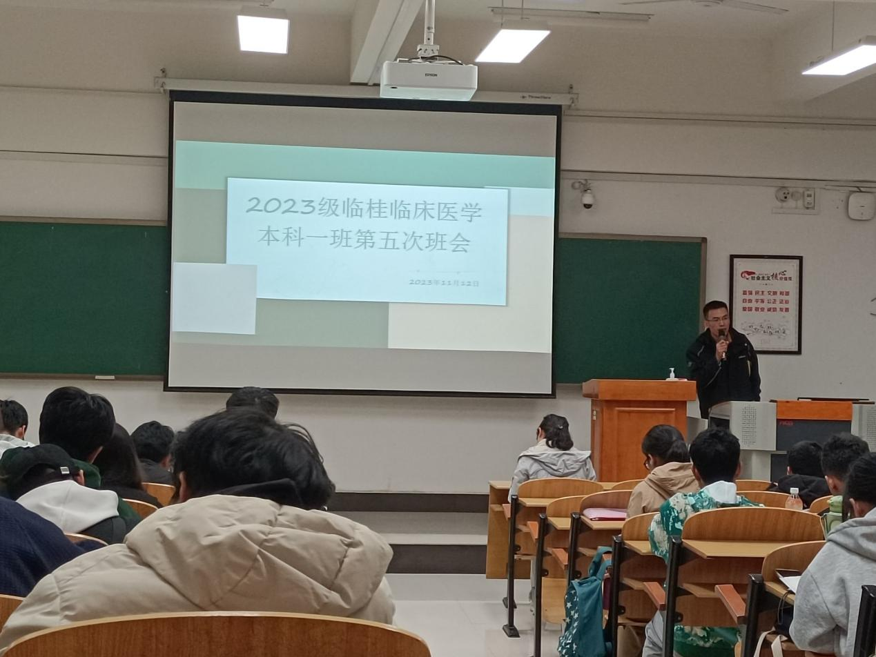 为深入贯彻党的二十大精神,进一步加强卫生安全建设,宣传艾滋病预防知识,帮助学生正确认识艾滋病,增强学生的自我保护意识和社会责任感,2023级临桂临床医学本科一班于11月12日晚上7:30在教室北楼N302举行了“预防艾滋病,从你我做起”主题班会,辅导员蒋艳平和班主任黄毅出席本次活动。