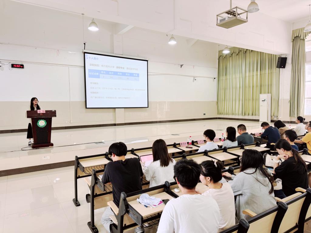 张怡以自身经历为例,向同学们讲解如何结合自身情况选择适合的院校,并重点阐述了备考复习的方法与技巧,强调要怀揣“不留退路”的信念。曹添民向同学们推荐对自身备考帮助极大的微信公众号、小程序,以及每门课程使用过的优质考题、网课资源。他强调要制订个性化的备考计划,推荐日常使用“脱敏法”训练,以便克服考试带来的紧张感,降低发挥失常的可能性。农菁菁介绍自己在考研期间的时间规划,提醒同学们应尽早关注报考院校和考试大纲,并从平衡时间、缓解焦虑、提升学习效率和找准学习方式等四个方面分享自己的心得。在自由交流环节,同学们就备考过程中遇到的困难和疑惑进行提问,学长学姐给予耐心解答。同学们纷纷表示,学长学姐的精彩分享不仅给他们提供宝贵的学习经验,更激发了他们追求卓越、勇攀医学高峰的坚定信念。