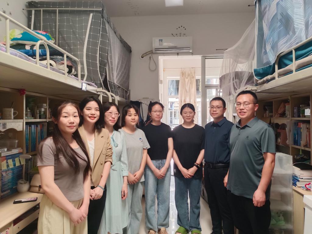 为进一步做好2020级实习生离校前的教育、管理和服务工作,确保学生有序离校和安全实习,5月11日傍晚,临桂临床医学院在临桂校区宿舍区开展宿舍走访活动。2020级大学生导师欧明林、侯显良,班级辅导员敬晓娟,班主任伍灵灵走访班级宿舍。