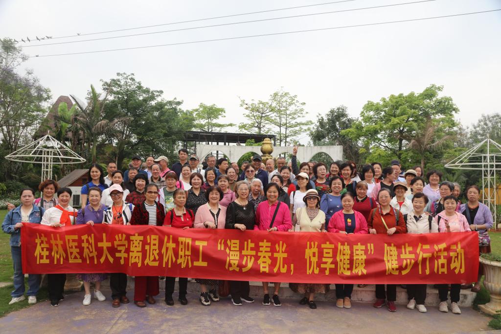 为丰富我校离退休职工精神文化生活,增进交流,倡导健康生活方式,4月30日,离退处组织离退休职工在雁山区红顶花园开展 “漫步春光,悦享健康”健步行主题活动。近90名老同志兴致勃勃地参加了活动。