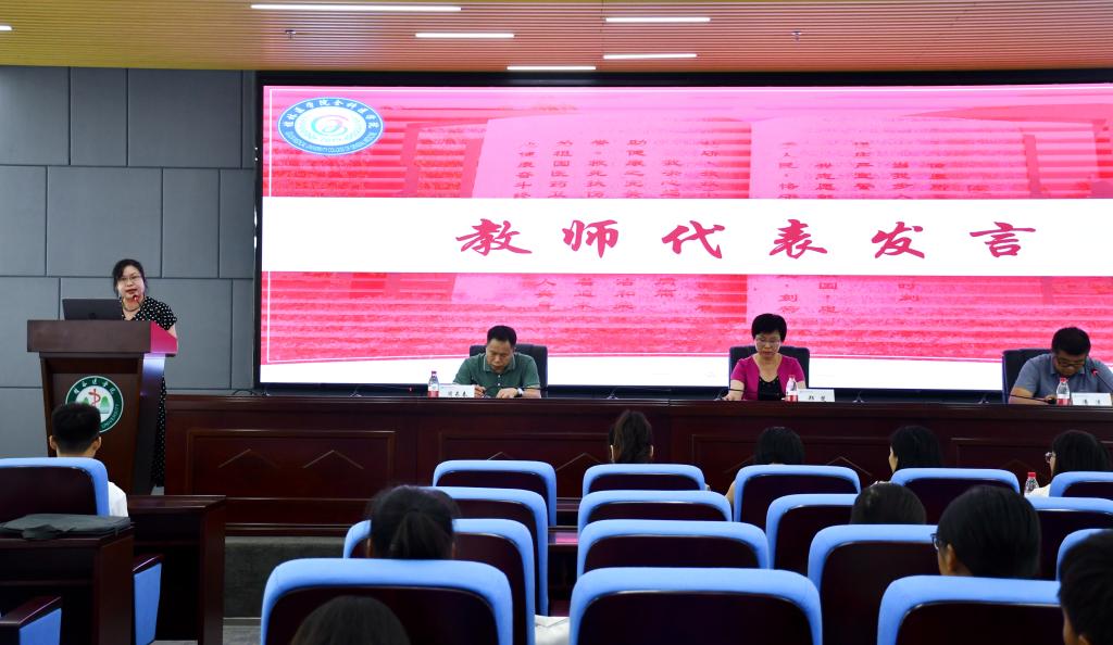 见面会上,全体在场人员一起观看学校的宣传视频,让2023级新生进一步了解学校的发展历程,增强了新生的归属感。随后,新生代表发言,他首先对学院老师、学长学姐们表达诚挚的感谢,并呼吁全体新生在大学中严于律己,牢记校训,将其内化于心,外化于行,以更优秀的自我投身于医学事业,注入新力量以推动医学事业滚滚向前。老生代表则对新生们的到来表达了由衷的高兴,她与新生们分享个人成长经历,叙说全科大家庭的温暖,激励新生们在新的起点设立好明确目标,踏实走好每一步,在新的舞台绽放不一样的光彩。教师代表对新生们的到来表达了热烈的欢迎与祝贺,为正处于茫然的新生们提出了几点建议:一是确定医学目标;二是坚定信心毅力;三是培养科研及实践能力;四是学会合作;她还表示全体学院教职工将以执着与热情的姿态,为新生托起一片蓝天。为增强新生的主人翁意识及责任感,全体院领导还为新生进行了授牌仪式。最后,郑楚总结发言,她强调中国的全科医学事业充满希望,对新生们提出了自己的期望,希望新生们要做理想远大、信念坚定、本领高强、业务过硬、开拓进取、敢为人先的新时代青年,期待同学在大学生活中展示自己,不负众望,不负韶华!