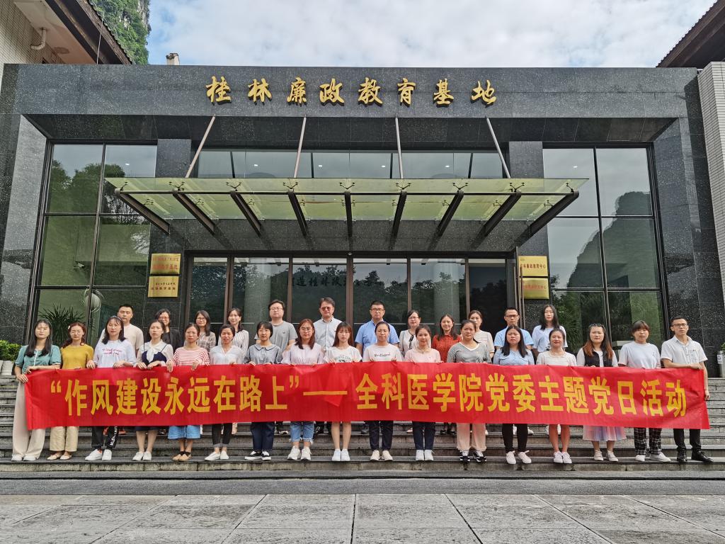 为进一步深化作风建设,切实筑牢拒腐防变的思想防线,营造崇尚廉洁的学院文化氛围,桂林医学院全科医学院开展“作风建设永远在路上”主题党日活动。 5月25日,桂林医学院全科医学院纪委书记、副院长尹凯,党委副书记潘涛带领职工代表、学生党员赴桂林市廉政教育基地参观学习,接受廉政警示教育。该活动邀请了民主党派人士唐灵(副院长)参加。