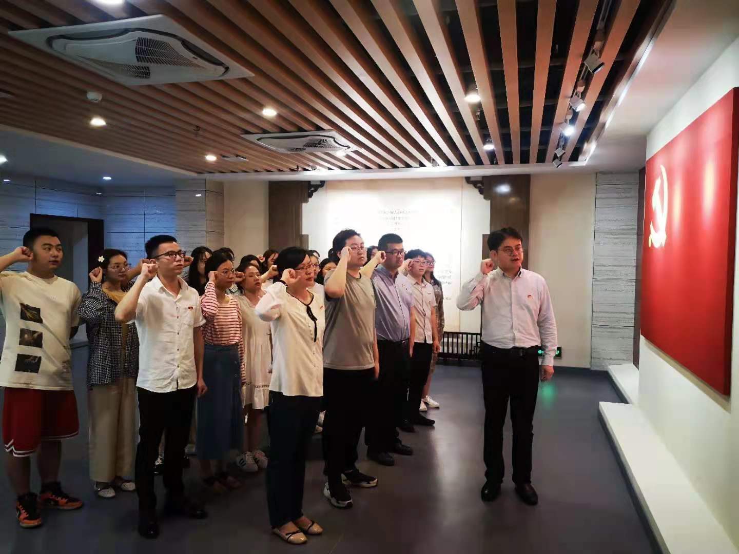在廉政教育基地讲解员的带领下,大家先后参观了溯源厅、警示教育厅、红色革命区及时代楷模、廉政人物等展厅,通过浏览图片、实物、微缩景观、情景再现,图文展示、音频播放、模拟场景、互动游戏等丰富的形式,进一步深入地学习了国家领导人的治国理政思想、红色革命先辈、时代楷模人物的优秀事例及桂林古代清官廉洁的反贪历史。在一个小时的参观中,大家一边认真聆听讲解员的讲解,一边认真观看展出资料和宣传展报,一个个震撼的事例和触目惊心的数字,让大家对反腐倡廉有了十分详细的了解,为之警醒。最后,在纪委书记尹凯的带领下,全体人员党旗面前举起右手,重温入党誓词,坚定理想信念。