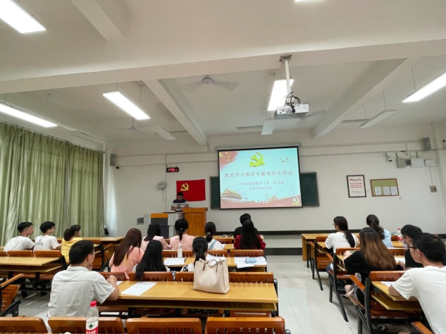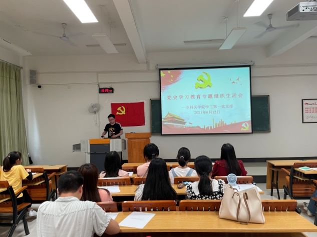 2021年6月12日,全科医学院学工第一党支部在临桂校区教学楼N108召开党史学习教育专题组织生活会。全科医学院党委副书记潘涛、学工第一党支部全体党员参与此次专题组织生活会,会议由学工第一党支部书记陈辰主持。