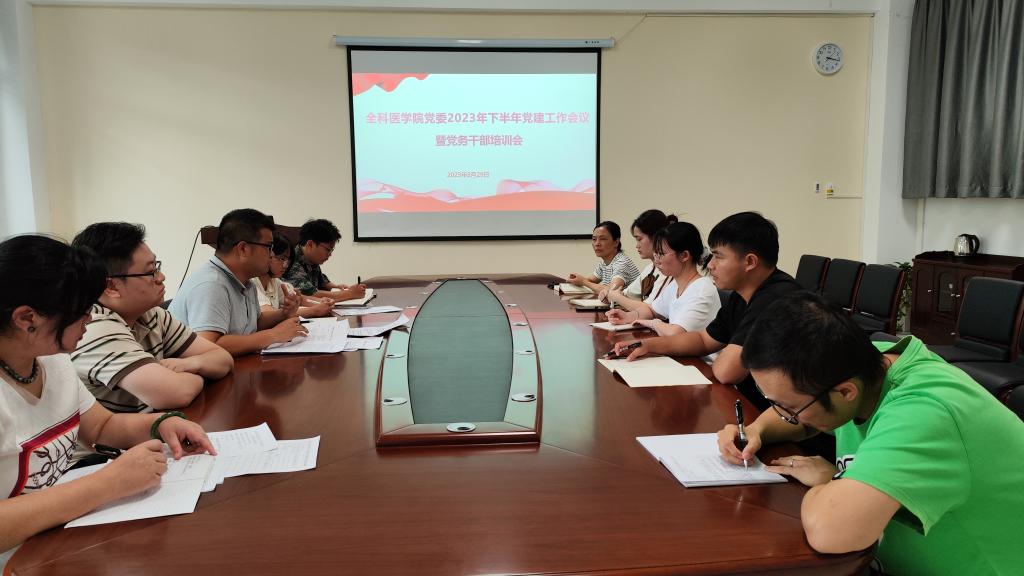 为进一步加强学院党建工作,打造品牌活动,强化基层党建工作力量,打造一支高素质、专业化的党务工作者队伍,8月29日,全科医学院党委在临床楼211会议室召开2023年党建工作会议暨党务干部培训会。学院领导、专职组织员、党务干部参加培训,会议由学院党委副书记潘涛主持。