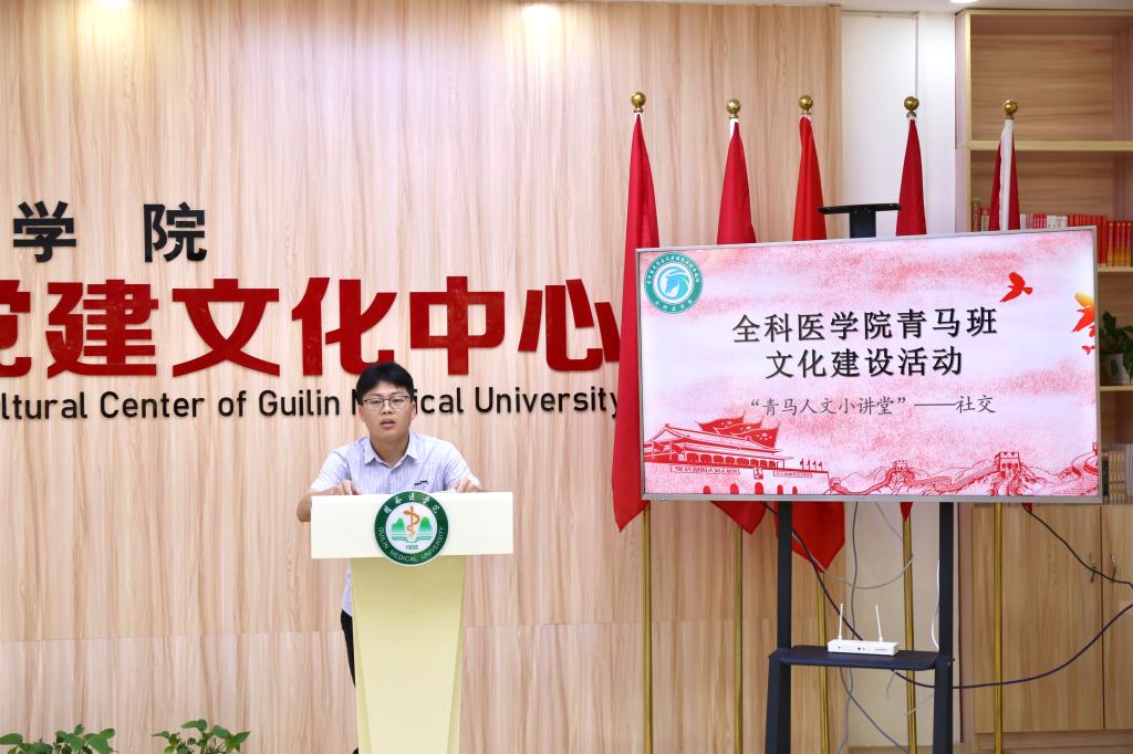 为进一步培养学员们社会交往能力、人际融合能力,促进学员彼此之间信息交流来丰富经验、增长见识、开阔视野,为今后从事临床事业打下基础,全科医学院“全心全医”青马班于2021年5月9日在桂林医学院临桂校区开展“掌握社会交往,深化自我认知”为主题的人文小讲堂活动,学工办辅导员何金宝、张健铭及青马班全体学员参加此次活动。